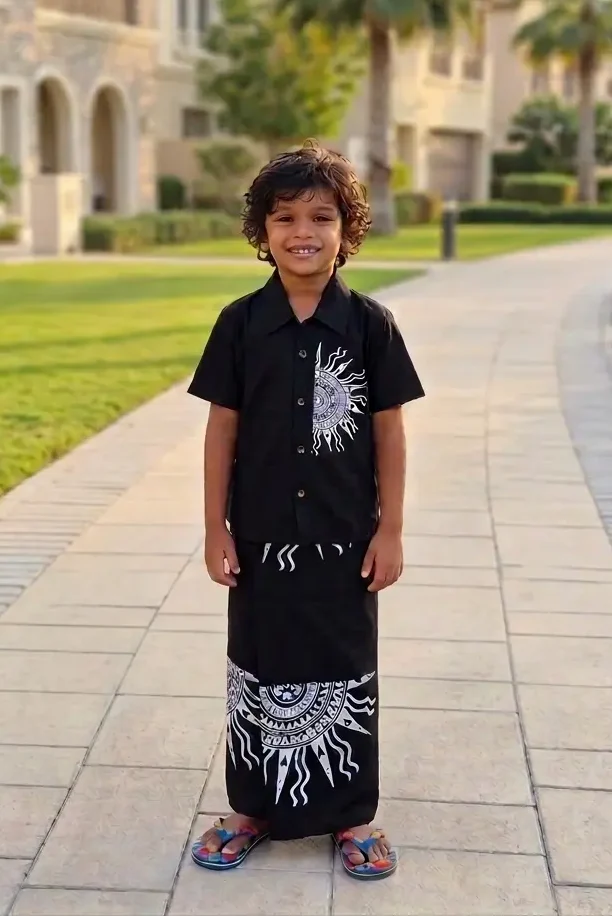 Batik Boys’ Shirt and Sarong (BLACK)
