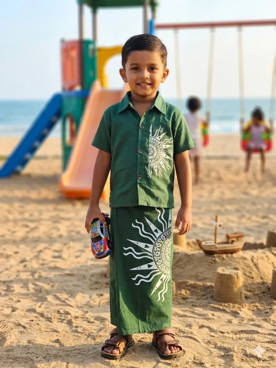 Batik Boys’ Shirt and Sarong (GREEN)